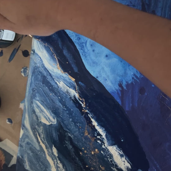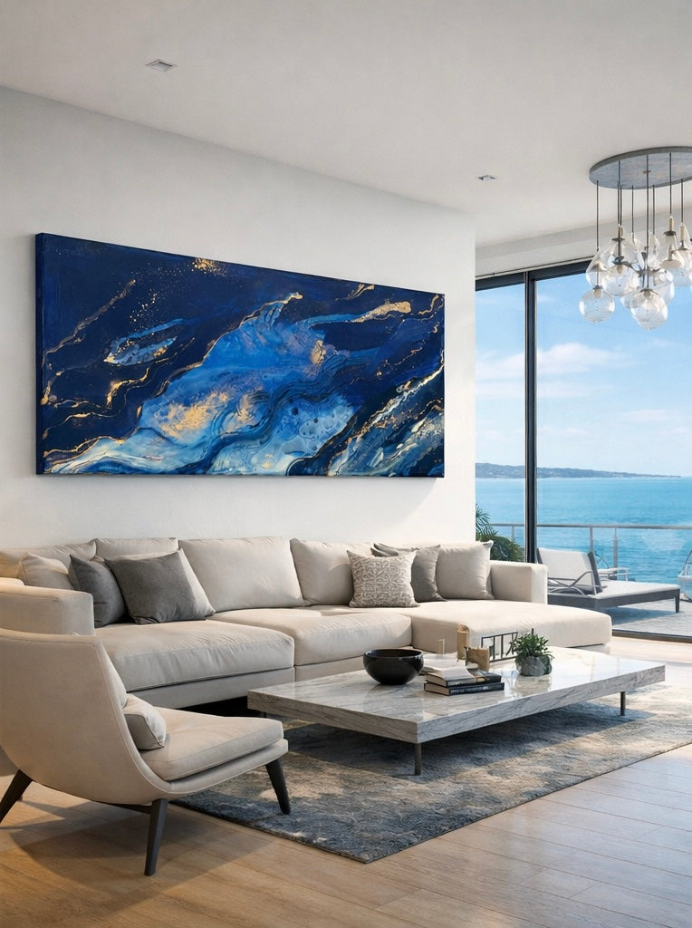 Eine abstrakte Erkundung tiefblauer Gewässer.