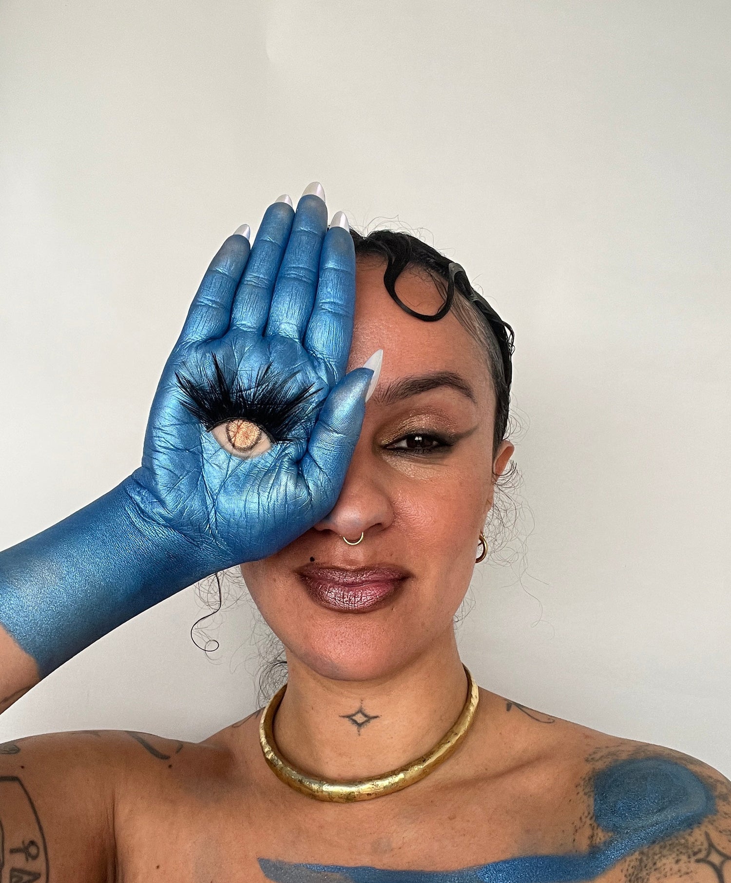 Adriatica is a multidisciplinary artist working across painting, tattoo and bodyart. Using the body as medium she explores themes of time, space, movement and consciousness.