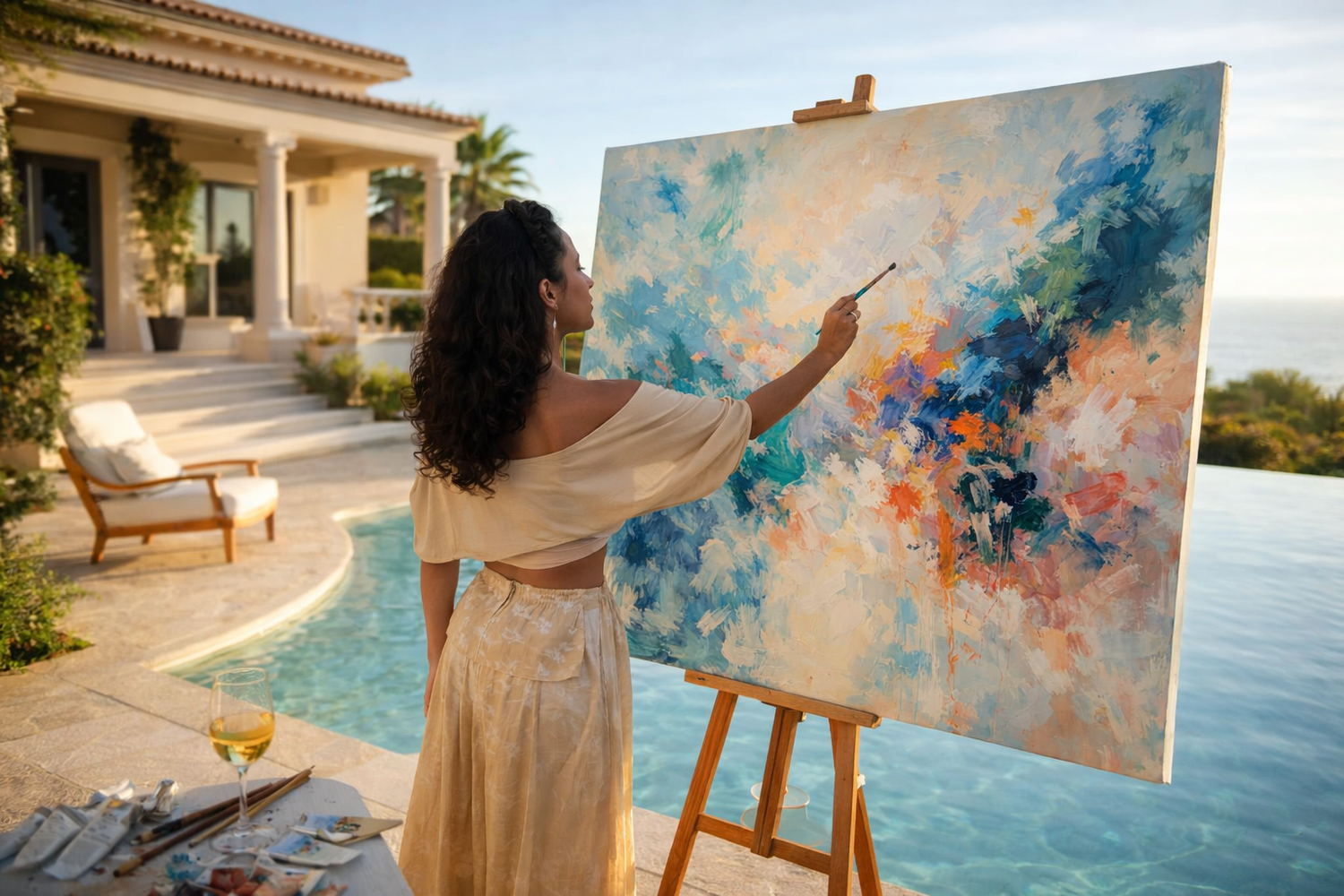 Adriatica creates a large original painting live at your home, villa or garden while you witness the entire creative process.